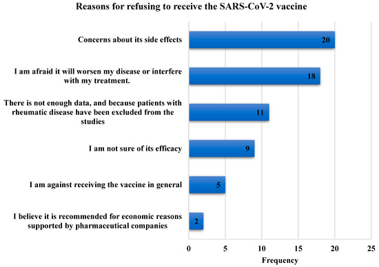 Bar chart showing the frequency of reasons for refusing to receive the SARS-CoV-2 vaccine.
