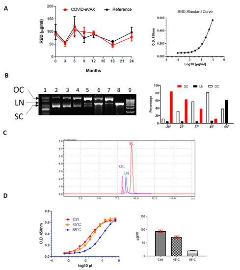 3.1. COVID-eVax Profile Changes as a Function of Storage Temperature and Lyophilization