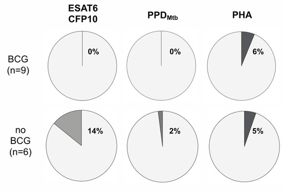 With more than 9 million cases annually, tuberculosis is among the leading causes of death by an infectious disease in humans. However, this number outlines the overall incidence of infection only partially as the vast majority of individuals infected with Mycobacterium (M.) tuberculosis do not progress to acute disease (more than 90% of adults). However, these individuals remain latently M. tuberculosis-infected (LTBI) potentially for their entire lives and carry the inherent risk of developing tuberculosis disease. Children have a higher risk of disease progression after infection (up to 40% in toddlers and babies) and, in addition, are more likely to become infected when in contact with contagious tuberculosis patients [1]. In addition, especially young children have a high risk of developing severe tuberculosis manifestations [2]. Against this background, several countries with a high prevalence of tuberculosis, including Ghana, recommend vaccination using the live M. bovis BCG vaccine (BCG) at birth [3]. Beneficial effects of BCG vaccination against the development of severe disease manifestations have been found in previous studies, but efficacy varies across regions and populations [4]. The exact mechanisms underlying partially protective BCG-mediated effects remain elusive. Central to this knowledge gap is that reliable biomarkers of protective immunity against M. tuberculosis are missing. Although key factors of immune protection against M. tuberculosis (e.g., IFN-γ, CD4+ T helper cells) have been identified, these do not predict disease progression for LTBI [5]. Latent M. tuberculosis infection can be detected by immune-based tests (including the tuberculosis skin test (TST) and IFN-γ release assays (IGRAs)). Since environmental mycobacteria and BCG show immune cross-reactivity with M. tuberculosis antigens used for TST, IGRAs have been developed that apply single immunogenic proteins of M. tuberculosis (a.o., Early Secretes Antigenic Target (ESAT)-6, Culture Filtrate Protein (CFP)-10) to detect M. tuberculosis infection with high specificity and sensitivity. Importantly, these antigens ESAT-6 and CFP-10 are not present in the BCG genome and, hence, discrimination of BCG-vaccine-induced T-cell responses and T-cells specific for M. tuberculosis infection can be achieved. Approximately six weeks after M. tuberculosis infection, immune tests become positive based on a sensitized T-cell response against M. tuberculosis antigens. However, recent studies found consistently negative IGRA tests in individuals with a high probability of being infected with M. tuberculosis [6,7]. This phenomenon has been termed ‘resistance’ to infection with M. tuberculosis, and individuals exhibiting the phenomenon have been termed ‘resisters’ [6,7]. The mechanisms underlying this phenomenon are not known and, moreover, it remains unclear if this phenomenon indicates resistance or, e.g., a prolonged time frame preceding immune conversion.