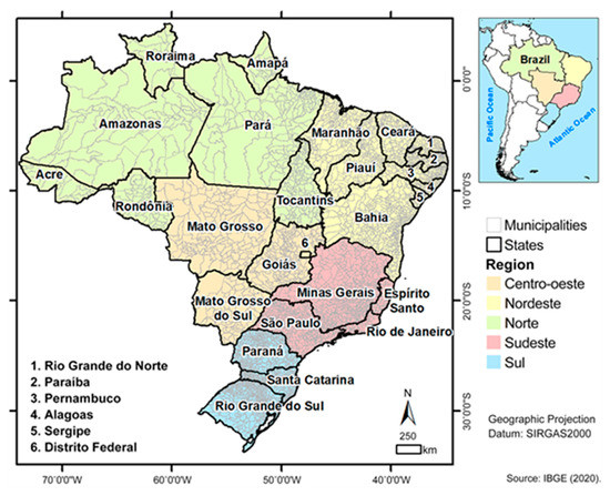 Location of Brazil and its official Brazilian territorial division. Fonte: Sardinha, 2021 [31].