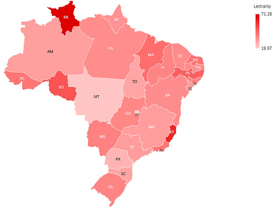 We found the highest lethality rates in the North of the country. Previous research has highlighted inequalities in deaths by geographic region in Brazil, as well as that the associated factors are directly related to local vulnerabilities and quality of health care [50].