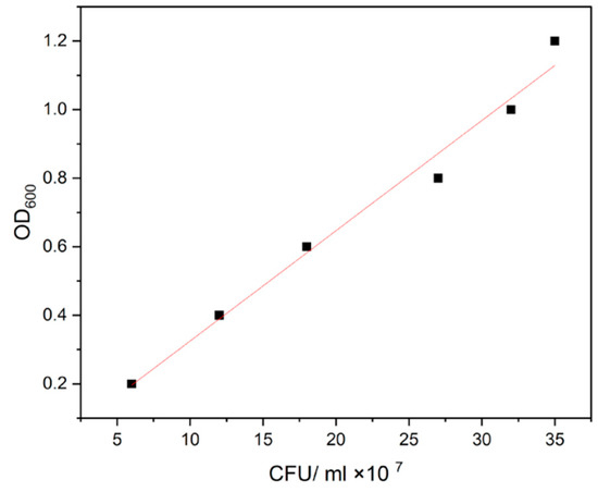 To analyze the retention capacity of nauplii, half of the nauplii were removed from the suspension, thoroughly washed, and transferred to a flask containing sterile seawater. The absorbance of the suspension at OD600 at intervals of time 0, 15, 30, 45, 60, 90, 120, 180 and 240 min was measured, respectively. To determine the concentration of bacteria uptake and evacuation in artemia, a standard concentration curve was prepared from the Aeromonas hydrophila isolate by using the plate count technique [13] (Figure 1).