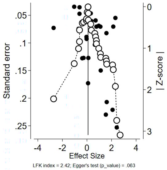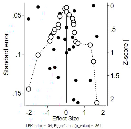 - Furuya-Kanamori, L.; Barendregt, J.J.; Doi, S.A. A new improved graphical and quantitative method for detecting bias in meta-analysis. Int. J. Evid.-Based Health 2018, 16, 195–203. [Google Scholar] [CrossRef]