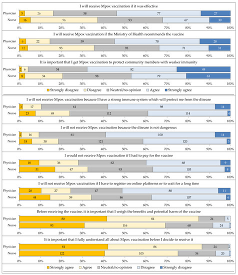 Therefore, the current study aimed to evaluate the willingness of nurses and physicians in Jordan to receive Mpox vaccination, while also exploring the possible associated factors influencing vaccine hesitancy/rejection. In addition, the attitudes towards compulsory vaccination against COVID-19, influenza, and Mpox were assessed.