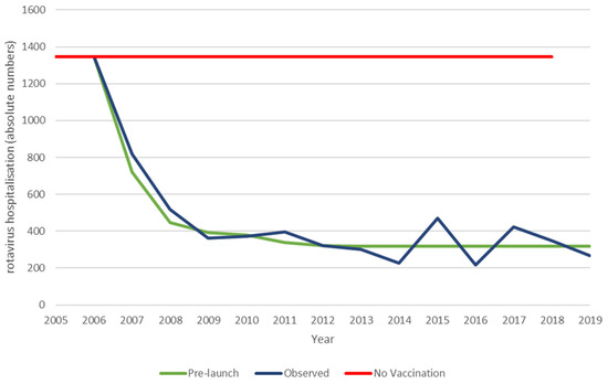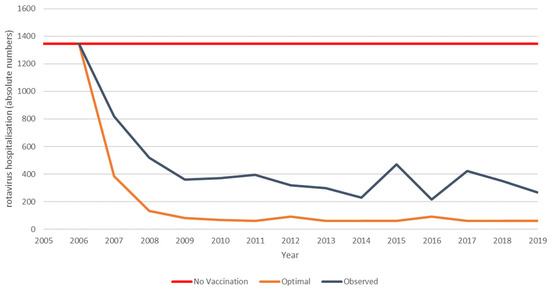 - Standaert, B.; Strens, D.; Raes, M.; Benninghoff, B. Explaining the formation of a plateau in rotavirus vaccine impact on rotavirus hospitalisations in Belgium. Vaccine 2022, 40, 1948–1957. [Google Scholar] [CrossRef] [PubMed]