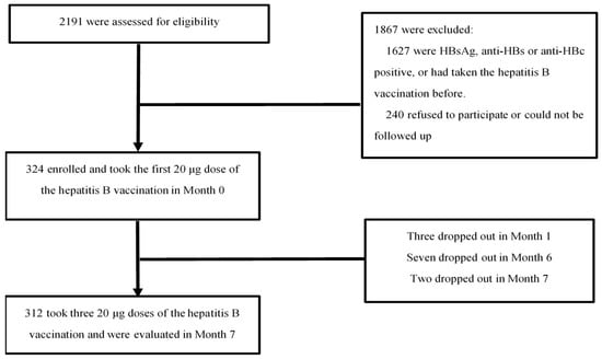 - Feng, Y.; Yao, T.; Chang, Y.; Gao, L.; Shao, Z.; Dong, S.; Wu, Y.; Shi, X.; Shi, J.; Feng, D.; et al. Immunogenicity and persistence of high-dose recombinant hepatitis B vaccine in adults infected with human immunodeficiency virus in China: A randomized, double-blind, parallel controlled trial. Vaccine 2021, 39, 3582–3589. [Google Scholar] [CrossRef] [PubMed]