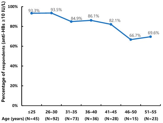 At the end of 2020, there were an estimated 1,053,000 PWH in China []. Among new cases reported from January to October 2021 in Beijing, 77.27% were MSM []. The majority of the participants in this study (MSM with an average age of 34 years) is representative of PWH in Beijing. Importantly, since 2016, most of the participants in our study had initiated ART regardless of their CD4 cell counts, reflecting the most recent international guidelines. The effectiveness of the HB vaccine in this population, therefore, represents the current real-world situation.