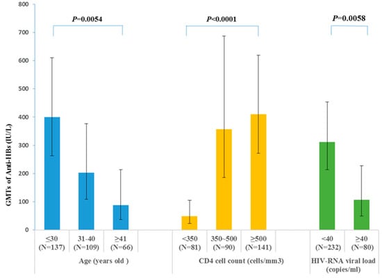 3.3.3. GMTs of the Anti-HBs in Different Groups