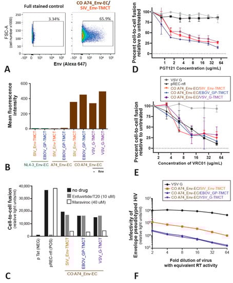 3.3. Phenotype, Function, and Inhibition of the Chimeric A74 Env Glycoproteins