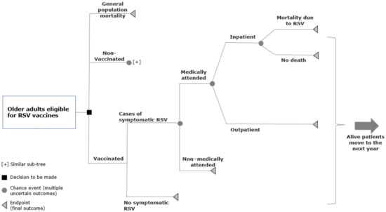 - Herring, W.L.; Zhang, Y.; Shinde, V.; Stoddard, J.; Talbird, S.E.; Rosen, B. Clinical and economic outcomes associated with respiratory syncytial virus vaccination in older adults in the United States. Vaccine 2022, 40, 483–493. [Google Scholar] [CrossRef]