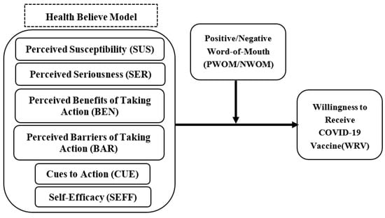 Earlier studies have confirmed that online WOM and recommendations in healthcare impact patients’ medical decisions and the adoption of new medications [,]. The research findings mentioned above indicate that prior studies using the Health Belief Model for COVID-19 vaccine-related research have primarily focused on specific populations in certain areas. However, a significant gap exists in the literature regarding the relationship between the Health Belief Model, vaccine acceptance, and positive and negative WOM evaluations.