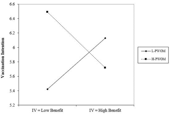 The interference effect of PWOM on the relationship between perceived benefits and willingness to receive COVID-19 vaccine.