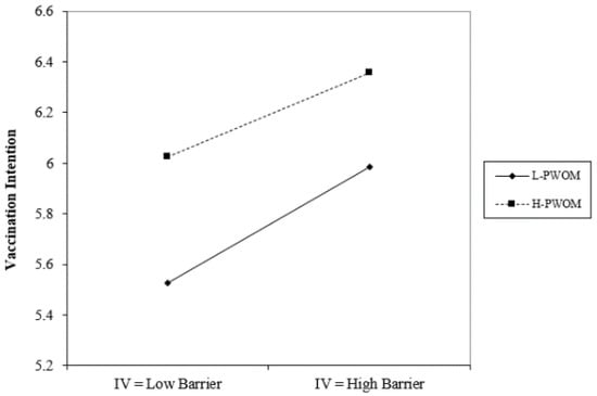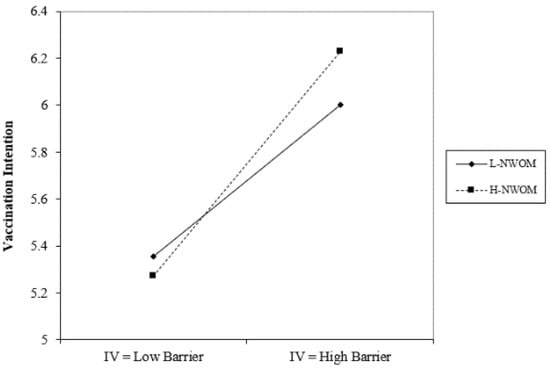 The interference effect of NWOM on the relationship between perceived barriers to action and willingness to receive vaccine.
