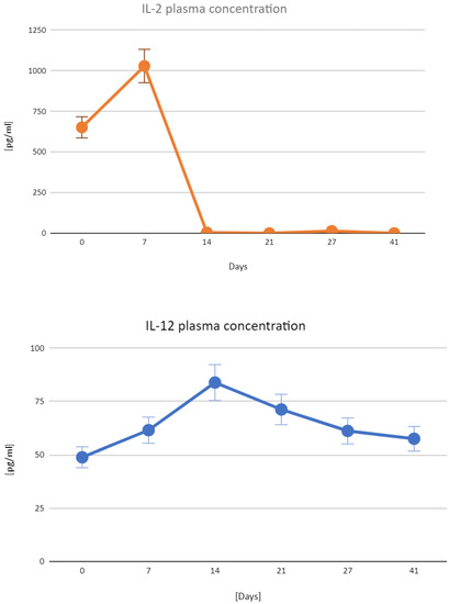 - Tevz, G.; Kranjc, S.; Cemazar, M.; Kamensek, U.; Coer, A.; Krzan, M.; Vidic, S.; Pavlin, D.; Sersa, G. Controlled Systemic Release of Interleukin-12 after Gene Electrotransfer to Muscle for Cancer Gene Therapy Alone or in Combination with Ionizing Radiation in Murine Sarcomas. J. Gene Med. 2009, 11, 1125–1137. [Google Scholar] [CrossRef]