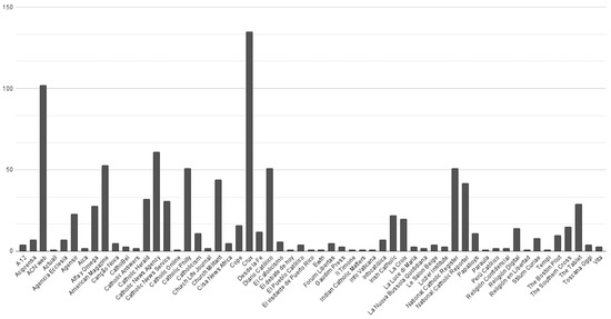 Of the 968 posts retrieved by the algorithm, more than half came from English-language websites (62.2%). Almost a third were retrieved from Spanish websites (27.6%) and significantly fewer from Italian (5.6%), French (2.8%) and Portuguese (1.7%) websites. Of the 109 websites consulted, publications were retrieved from 58 websites. The sites from which the most publications were retrieved are Crux (135 articles) and ACN web (102). Almost half of the publications were retrieved from Catholic News Agency (61), American Magazine (53), Catholic Philly (51), National Catholic Register (51) and Catholic Newspaper (51). Fewer than 50 publications were retrieved from the remaining websites (Figure 1).