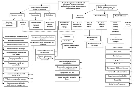 APA StyleSalleh, H., Avoi, R., Abdul Karim, H., Osman, S., Dhanaraj, P., & Ab Rahman, M. A. ‘I. (2023). A Behavioural-Theory-Based Qualitative Study of the Beliefs and Perceptions of Marginalised Populations towards Community Volunteering to Increase Measles Immunisation Coverage in Sabah, Malaysia. Vaccines, 11(6), 1056. https://doi.org/10.3390/vaccines11061056