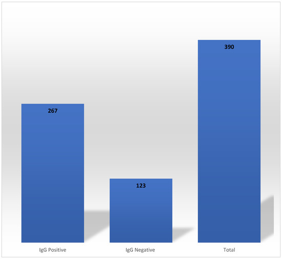 Data were directly exported from REDCap into the IBM SPSS Version 27.0 software (IBM SPSS, Chicago, IL, USA) and checked for accuracy. Descriptive statistics were used to summarize the demographic characteristics of the study participants and they were presented as counts and frequencies for categorical data and means for continuous data. Given the variable intervals between the RT-PCR-confirmed infections among the 390 participants and the first assay of SARS-CoV-2 anti-N IgG antibodies (Phase 1), the durability of these antibodies was assessed and categorised as follows: 1–3 months, 4–5 months and 6–7 months. The mean durability of SARS-CoV-2 anti-N IgG was also reported. Similarly, the extended durability of the SARS-CoV-2 anti-N IgG was tested at 7–8 months among 202 participants (Phase 2) who had persistent antibodies at the end of Phase 1.