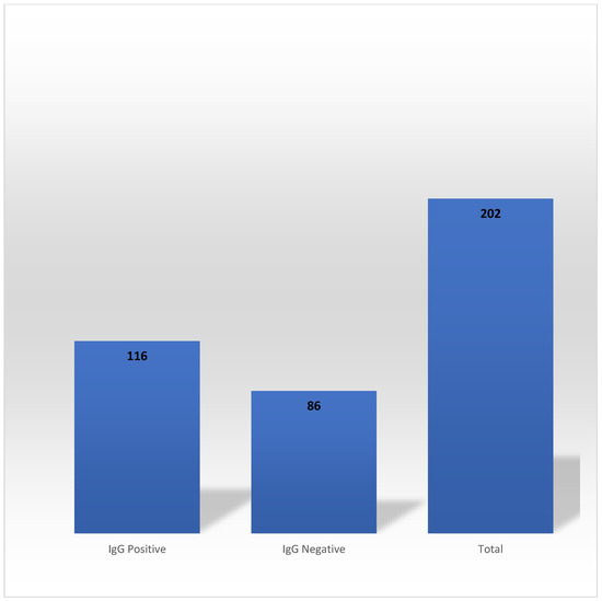 In the Phase 2, 202 HCWs out of 267 who exhibited SARS-CoV-2 anti-N IgG antibody seropositivity during the Phase 1 participated. The persistence of the SARS-CoV-2 anti-N IgG antibody occurred in 57.43% of the participants (n = 116) (Figure 2). None of the active smokers and formers smokers sustained SARS-CoV-2 anti-N IgG antibody for an extended period.