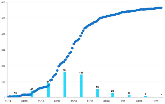 Two kinds of temporal and spatial analysis were performed to characterize and visualize the ASF outbreak dynamics in Ukraine: a space–time permutation model from SatScan version 9.6 software (www.satscan.org) and one based on assumptions about ASF biology and behavior. The space–time permutation model uses coordinates and time of each event to test for statistically significant spatio-temporal clustering [34]. The maximum scanning window for the analysis was set to 60 days in time and 200 km in space. Time aggregation option was not applied. The maximum number of Monte Carlo replications was set to 999.