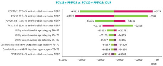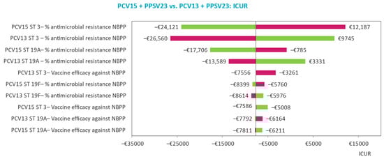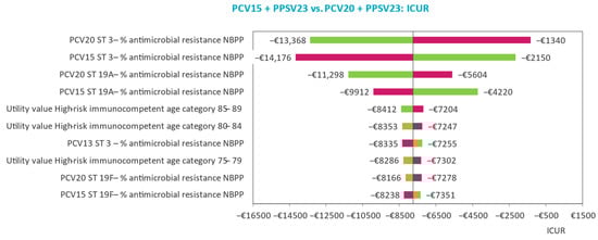 | ICUR | PCV15 + PPSV23 Dominant over PCV13 + PPSV23 | PCV15 + PPSV23 Dominated by PCV20 + PPSV23 | PCV15 + PPSV23 Dominated by PCV20 | €108,542 | PCV15 + PPSV23 Dominant over PCV13 + PPSV23 | PCV15 + PPSV23 Dominated by PCV20 + PPSV23 | PCV15 + PPSV23 Dominated by PCV20 | €3605 | PCV15 + PPSV23 Dominant over PCV13 + PPSV23 | PCV15 + PPSV23 Dominant over No Vaccination |
