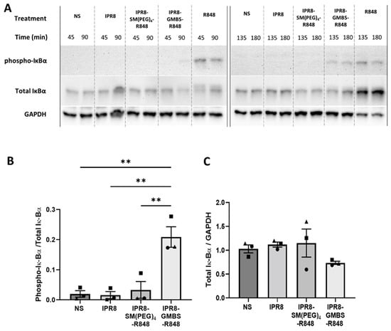 3.5. IPR8-GMBS-R848 Promotes Increases in IκBα Phosphorylation Compared to IPR8-SM(PEG)4-R848