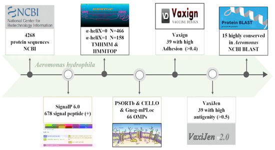 In the present study, reverse vaccinology was applied to provide the basis for the preparation of subunit vaccines by predicting the signal peptides, transmembrane helices, and subcellular localization of candidate proteins (Figure 1).