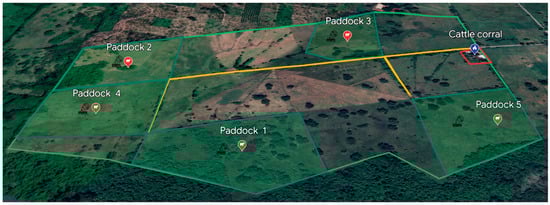 Spatial distribution of cattle in paddocks at CEIEGT-UNAM (Rancho “El Clarín”), Veracruz, Mexico.