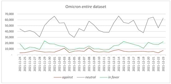 The evolution of against, neutral, and in favor tweets—Omicron entire dataset.