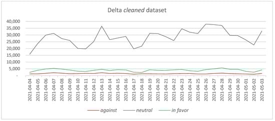 The evolution of against, neutral, and in favor tweets—Delta cleaned dataset.