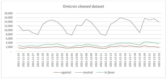 The evolution of against, neutral, and in favor tweets—Omicron cleaned dataset.