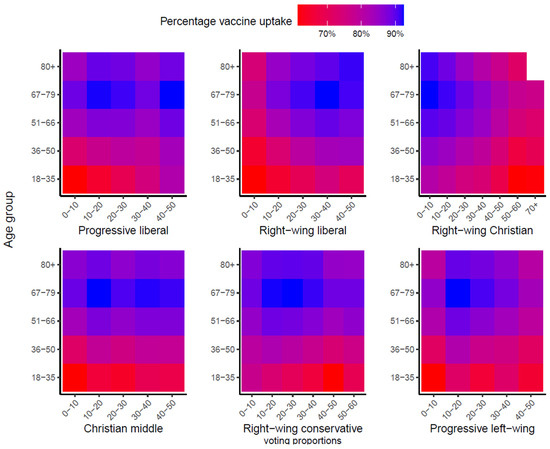 Voting proportions for political parties in the 2021 national elections were an important determinant for vaccine uptake as well. These findings were already reported in an ecological study on COVID-19 vaccine uptake in the Dutch population using the same data on voting proportions for political parties [11]. This study reported a positive association between vaccine uptake and higher voting proportions for right-wing liberal, progressive liberal, and Christian-middle political parties, and a negative association with higher voting proportions for right-wing Christian and right-wing conservative political parties. Voting proportions for right-wing Christian political parties have been well-described as a proxy for the Orthodox protestant religion, associated with the refusal of childhood vaccinations based on religious arguments [24,25]. Furthermore, previous studies found a positive association between higher voting proportions for right-wing conservative parties and HPV and MenACWY vaccine uptake and hypothesise these voters may have less confidence in the government, media, and social institutions [25,26].