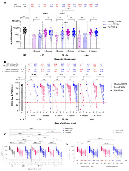 - Ryan, F.J.; Hope, C.M.; Masavuli, M.G.; Lynn, M.A.; Mekonnen, Z.A.; Yeow, A.E.L.; Garcia-Valtanen, P.; Al-Delfi, Z.; Gummow, J.; Ferguson, C.; et al. Long-term perturbation of the peripheral immune system months after SARS-CoV-2 infection. BMC Med. 2022, 20, 26. [Google Scholar] [CrossRef]