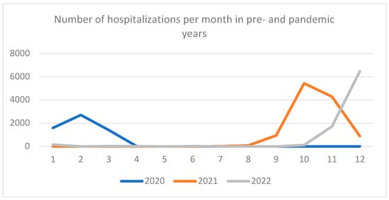 Number of hospitalizations due to respiratory syncytial virus infections between January 2020 and December 2022.