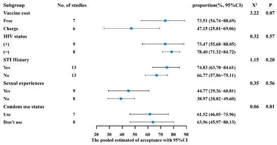 3.2. HPV Vaccine Acceptance and Results of Subgroup Analysis