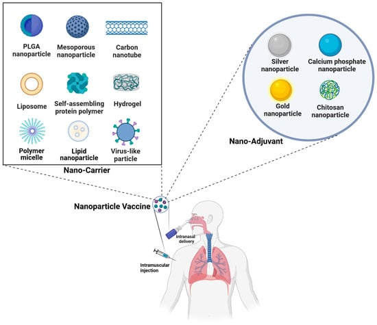Nanoparticles as vaccine carriers and adjuvants. Nanoparticles can be utilized as both immunogen carriers and vaccine adjuvants. Nano-carriers include PLGA nanoparticles, mesoporous nanoparticles, carbon nanoparticles, liposome-based nanoparticles, self-assembling protein polymer-based nanoparticles, lipid-based nanoparticles, virus-like particles, hydrogels, and polymer micelles. Both organic and inorganic nanoparticles can be used as nano-adjuvants, which include silver nanoparticles, gold nanoparticles, calcium phosphate nanoparticles, and chitosan nanoparticles.