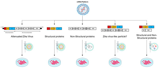 The mRNA platform, primarily self-amplifying RNA technology, demonstrates a broad range of possibilities for potential therapeutic constructs employing the genome of an oncolytic virus, represented here by the Zika virus. In the first construct, the entire genome of the Zika virus is used with modifications that make it attenuated. In the second construct, structural proteins of the Zika virus are employed, resulting in the formation of a non-infectious empty particle. In the third construct, non-structural proteins are used to create a cluster of proteins with potential oncolytic properties. In the fourth construct, a combination of two Zika virus polyproteins is proposed, one containing structural and the other non-structural elements, potentially forming an infectious viral particle. In the fifth construct, it is possible to combine some structural and non-structural proteins to form a cluster of oncolytic proteins or even a non-infectious particle containing both structural and select non-structural proteins.