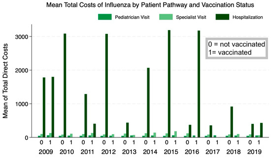 On the other hand, hospitalization costs represent the highest direct unit costs for influenza in children in most European countries, (ranging from a minimum of GBP 1050 in 2017 in England to a maximum of EUR 4467 in 2014 in France, according to a recent systematic review), accounting only for a minimum of the overall direct costs [17,18].