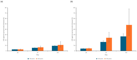 3.2. Vaccine Efficacy and rVE against Symptomatic COVID-19 Disease
