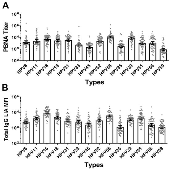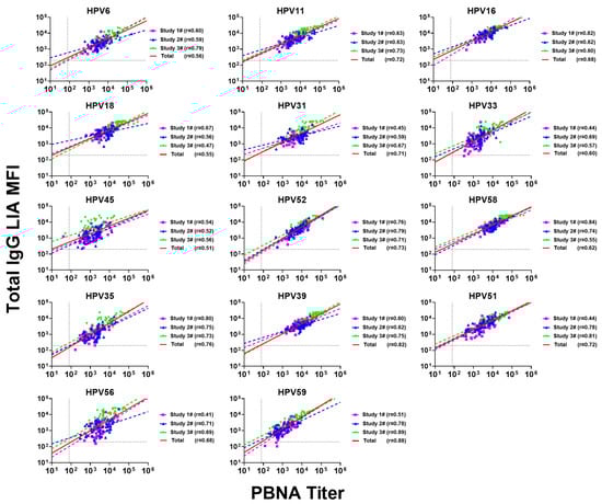 - Bei, L.; Zhang, X.; Meng, D.; Gao, S.; Jia, J.; Zhao, D.; Luo, C.; Li, X.; Qiu, H.; Xie, L. Immunogenicity correlation in cynomolgus monkeys between Luminex-based total IgG immunoassay and pseudovirion-based neutralization assay for a 14-valent recombinant human papillomavirus vaccine. J. Med. Virol. 2022, 94, 3946–3955. [Google Scholar] [CrossRef] [PubMed]