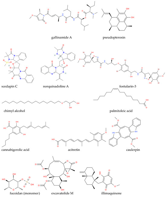 Structure representation of the marine-derived antimicrobials discussed in Section 3.3.