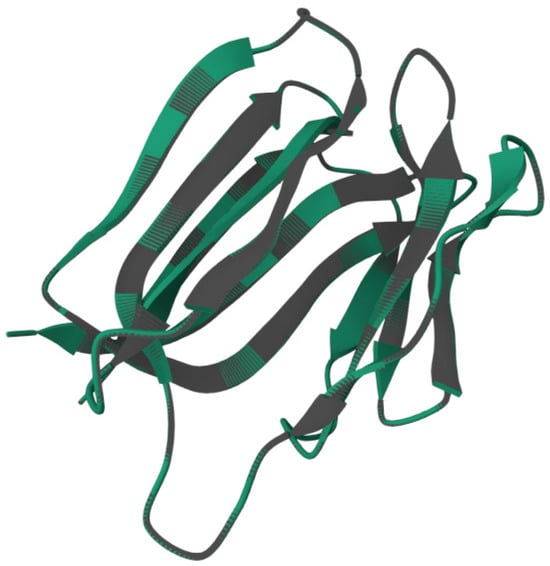 Three-dimensional view of the protein griffithsin from Griffithsia sp. The picture is freely available at the link https://www.rcsb.org/3d-view/3LL2/1 (accessed on 9 September 2024).