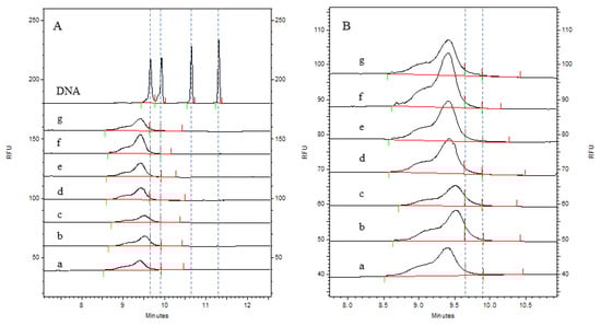 - Wang, W.T.; Gao, T.; Luo, J.; Guo, L.H.; Li, X.; Li, Y.; Chen, H.X. Size distribution analysis of residual host cell DNA fragments in lentivirus by CGE-LIF. Electrophoresis 2023, 44, 462–471. [Google Scholar] [CrossRef]