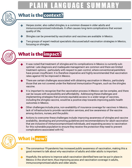 Abiel Mascareñas de los Santos declares no financial and non-financial relationships and activities and no conflict of interest. Adriana Guzman-Holst is a GSK employee and holds financial equities in GSK. Alejandro Ernesto Macías Hernández declares having received payment for lectures from GSK and Sanofi, and he also declares receiving support from Sanofi, Pfizer and GSK in exchange for attending meetings. Carlos Abud Mendoza declares no financial and non-financial relationships and activities and no conflict of interest. Álvaro Cabrera declares no financial and non-financial relationships and activities and no conflict of interest. Argelia Lara-Solares declares that she received consulting fees, payment or honoraria for lectures, presentations, speaker’s bureaus, manuscript writing or educational events, as well as payment for expert testimonies directly paid to her from Grünenthal, Organon, Siegfried-Rhein, Asofarma, Pfizer, Biogentec and Liomont. Argelia Lara-Solares also received support for attending meetings and/or travel from Grünenthal and Pfizer and support from these two companies for her participation in advisory boards. Daniel Motola Kuba received payment or honoraria for lectures, presentations, speaker’s bureaus, manuscript writing or educational events, support for attending meetings and/or travel and support for participating in Data Safety Monitoring Boards or advisory boards from Roche, BMS, GSK, MSD, EISAI, Merck, IPSEN and AMGEN. He was the treasurer of the “Medica Sur Sociedad de Medicos” society from August 2020 to October 2022. He also declares having stock options from VOO, VTI, AAPL, BRKB, MCD, TSLA FUNO 11 and FMTY 14. Diana Fabiola Flores Díaz declares having received payment for speaker bureaus from Roche and Novartis, payment from GSK in exchange for participation on an advisory board, and support from Gilead, MSD and Roche in exchange for attending meetings. Fernanda Salgado Gomez is an employee of Bavarian Nordic AG and was an employee of GSK during the conduct of the advisory boards. Gloria C. Huerta García is a GSK employee. Graciela Castro declares no financial and non-financial relationships and activities and no conflict of interest. Javier Nieto is a GSK employee and holds financial equities in GSK. José Antonio Mata Marín declares receiving payment or honoraria for lectures, presentations, speaker’s bureaus, manuscript writing or educational events from GSK, MSD, Abbvie, Janssen and Pfizer. He also declares having received support for attending meetings and/or travel from Gilead, Janssen, Pfizer and MSD. He also served on data safety monitoring boards or advisory boards from GSK, MSD and Janssen. José Fernando Barba Gomez has participated in advisory boards organized by GSK. Juan Manuel Calleja Castillo declares receiving payment or honoraria for lectures, presentations, speaker’s bureaus, manuscript writing or educational events from Boehringer Ingelheim and Abbot. He also received support for attending meetings and/or travel from Boehringer Ingelheim and he served on advisory boards organized by Abbott. Juan Carlos Tinoco declares no financial and non-financial relationships and activities and no conflict of interest. Maria Margarita Contreras Serratos declares no financial and non-financial relationships and activities and no conflict of interest. Maria Yolanda Cervantes-Apolinar is a GSK employee and holds financial equities in GSK. Nathali Castellanos Ramos is a GSK employee and holds financial equities in GSK. Oscar Rosas Carrasco declares having received payment for lectures from GSK and Pfizer. Raúl Ricaño is a GSK employee. All authors declare no other financial or non-financial relationships and activities and no other conflicts of interest.