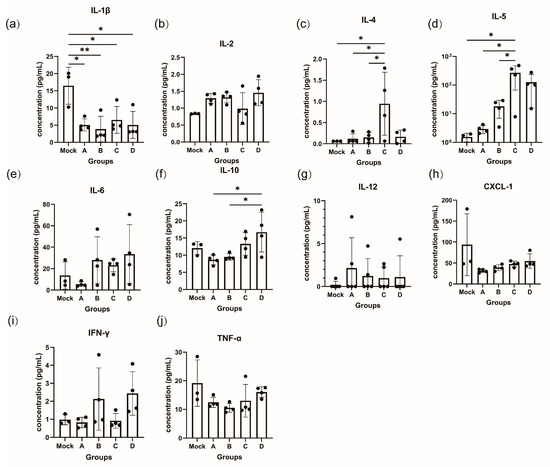 3.4. Booster Immunization Affects the Levels of Cytokines in Serum