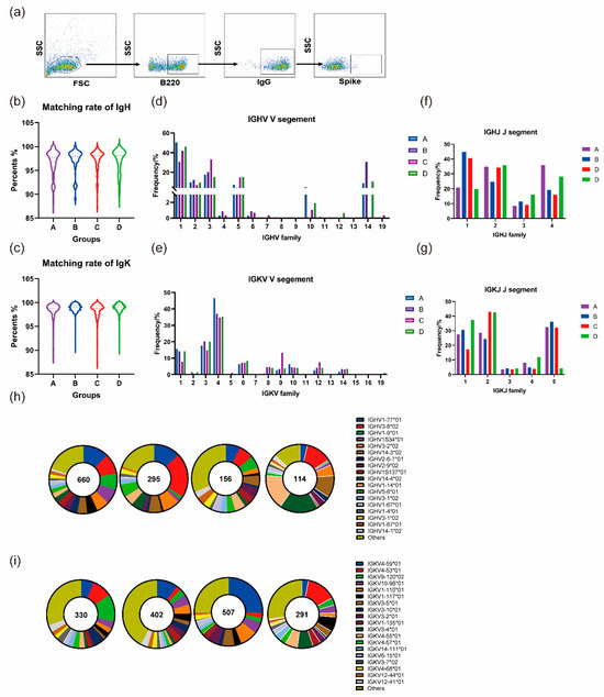 - Gao, H.; Yu, L.; Yan, F.; Zheng, Y.; Huang, H.; Zhuang, X.; Zeng, Y. Landscape of B Cell Receptor Repertoires in COVID-19 Patients Revealed Through CDR3 Sequencing of Immunoglobulin Heavy and Light Chains. Immunol. Investig. 2022, 51, 1994–2008. [Google Scholar] [CrossRef]