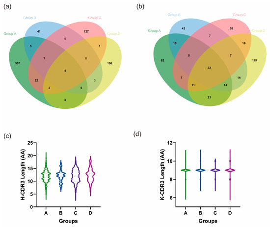 | Group | Sequence Number of IgH | Species of H-CDR3 | Ratio | Sequence Number of IgK | Species of K-CDR3 | Ratio |
