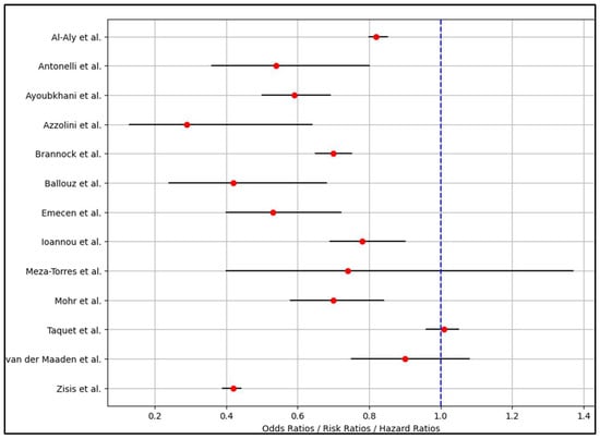 | 13 [33] Zisis et al. | 1,578,719 COVID-19 patients (25,225 vaccinated) | 59.8 female, 50.2% male | Vaccine group: 54.82 years (mean); No-vaccine group: 42.91 years (mean) | Unvaccinated patients with COVID-19 |