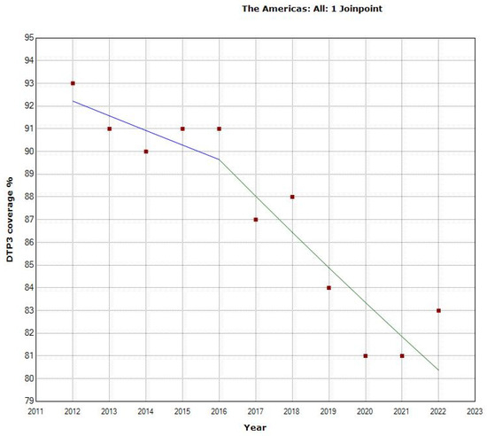 Joinpoint analysis DTP3 rates in America, 2012–2022.
