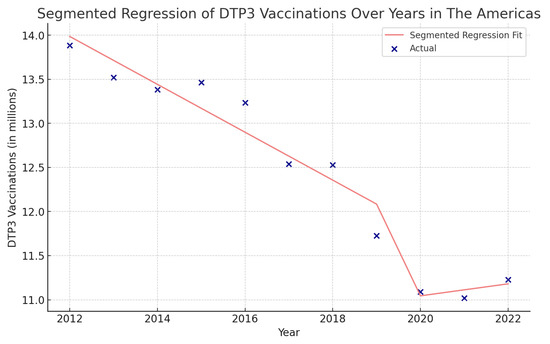Segmented regression of the number of DTP3 vaccinations in American nations.