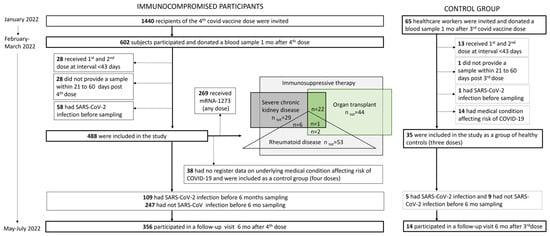Study group flowchart showing the immunocompromised participants and the control groups included in the study.
